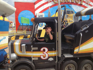 We had 2 tokens left but these rides took 3 tokens, luckily we fell upon the nice vendor who still let Matthew ride. He had a great time and was excited when he realized he was going all by himself. He was turning on all the turns and had a good time. He already has plans on which truck he'll ride next year and Taylor can ride with him.